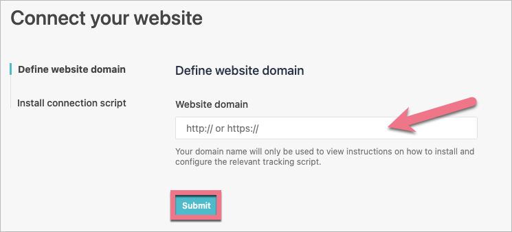 4. Enter your domain (landing page URL address) and click Submit.
