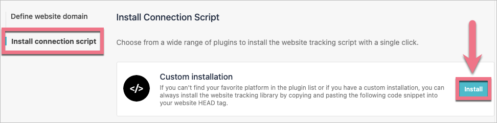 5. Navigate to the Install connection script tab and click Install next to the Custom installation option.
