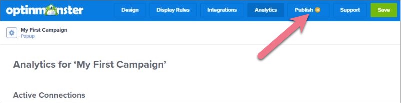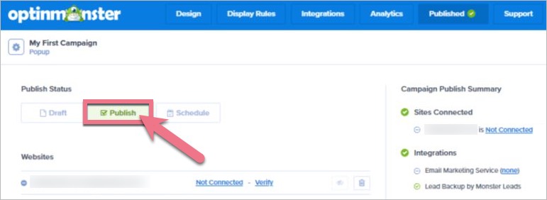 1. Once your OptinMonster campaign is ready, go to the Publish tab.