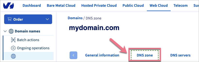 1. Log in to your OVH control panel, find your domain on the list, and click on it.