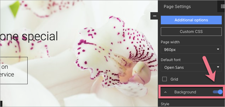 3. Use the slider to turn on the Background and unfold the tab.