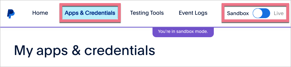 2. Go to the Apps & Credentials tab. Select Sandbox if you want to run a test transaction, or click on Live to proceed with the actual sale of products. You need a Business account to go live and process live transactions.
