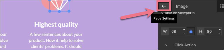 When editing, you can go back to Page Settings by clicking on the arrow: