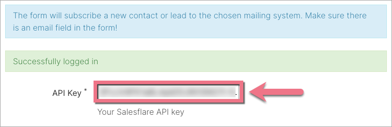 4. In the API Key field, paste the key copied from Salesflare.