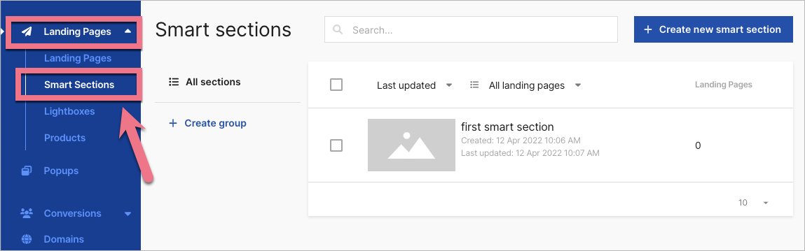 You can access the templates by adding a new Section widget to your landing pages. You can also browse the section templates in the template gallery.