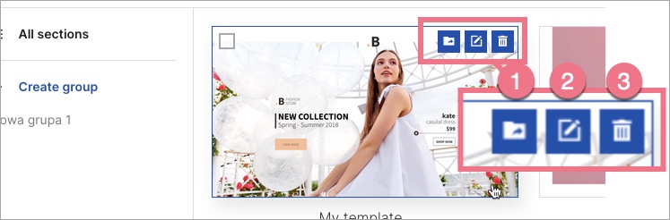 3. Click on your template. You can move it to a group (1), rename it (2), or delete it (3).
