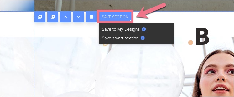 1. Click on a section, choose Save to My Designs, and give your template a name. You can also save your section as a Smart Section.