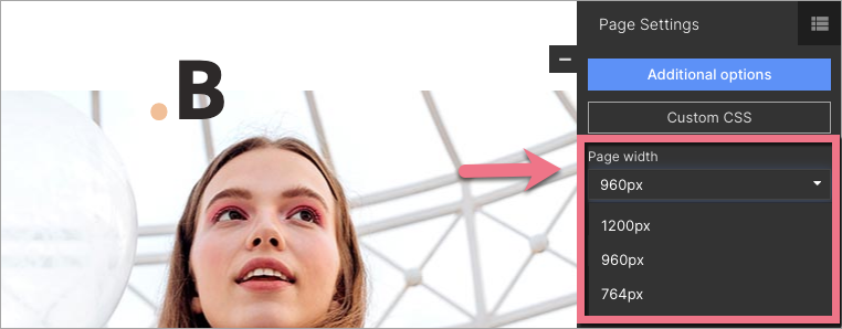 You can also adjust the width of the whole landing page. Click on the arrow to go back to Page Settings. Then choose your page width.
