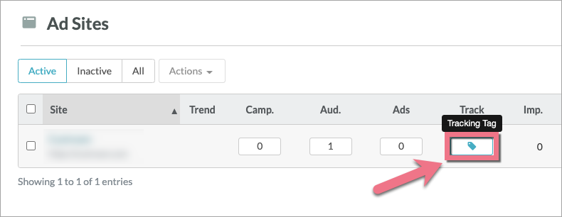 3. Find your site and click the Tracking Tag icon.