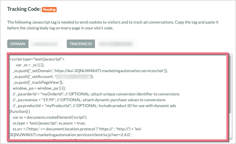 Get your tracking tag from SharpSpring Ads