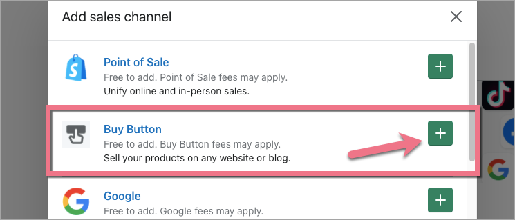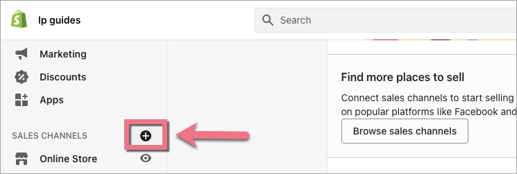 2. Click on the plus icon next to the Sales Channels tab.