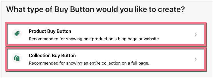 5. Select the type of your Buy Button.