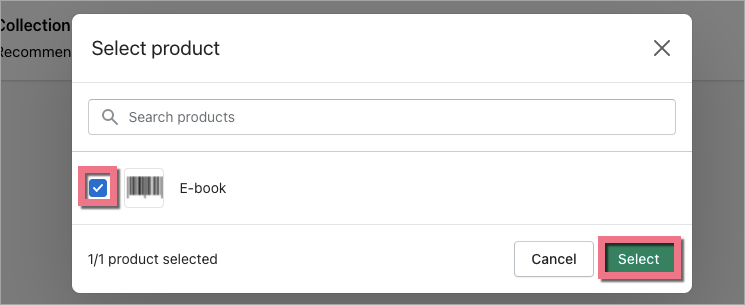 6. Choose your product (or collection) and click Select. In the next window, customize your button and click Next.