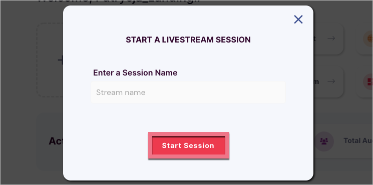 When you are ready to start streaming, click the stream name in your Dashboard or click Copy Link and open it in a new browser tab.