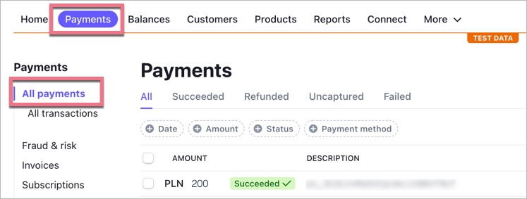 You will find the details of each transaction in the Payments tab.