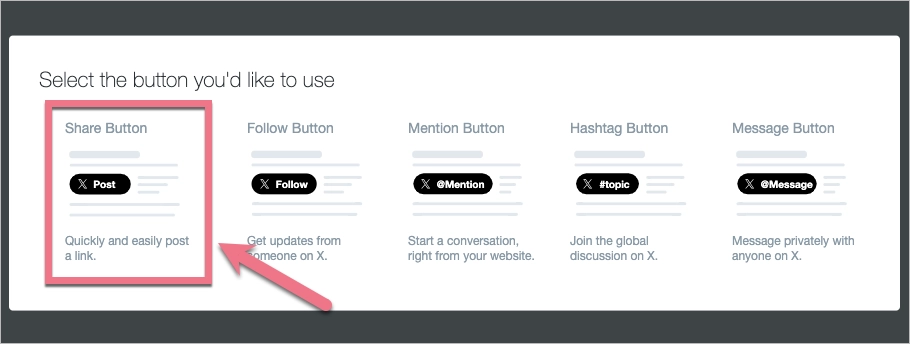 3. In a pop-up window, you can choose the type of button you want to create. Click Share Button.