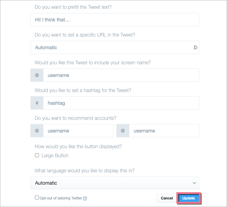 Add a Twitter (X) button to your landing page so your visitors can tweet and share your page quickly and easily.