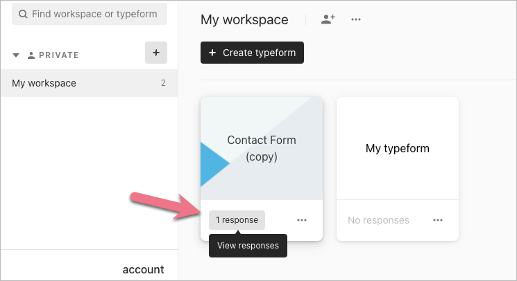 To find your responses, go to your workspace in Typeform and click the number below the form/survey name.