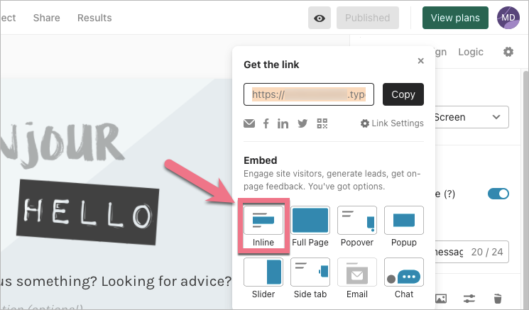 See if your Typeform widget displays correctly. If needed, go back to the editor and adjust the HTML widget’s width and position.