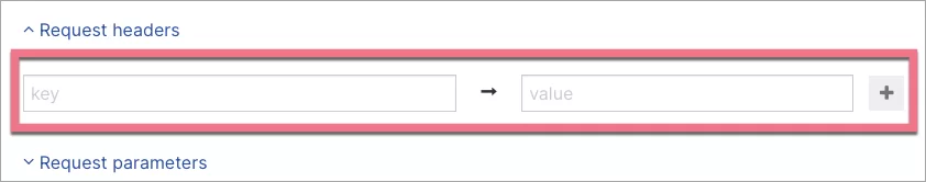 7. In the Request headers fields, set the request headers that will be sent each time the form is sent. Remember that each heading consists of two parts: key and value, e.g., API_KEY: 1234-abcd-5678, where the first field concerns key and the second value. To add headers, click +.