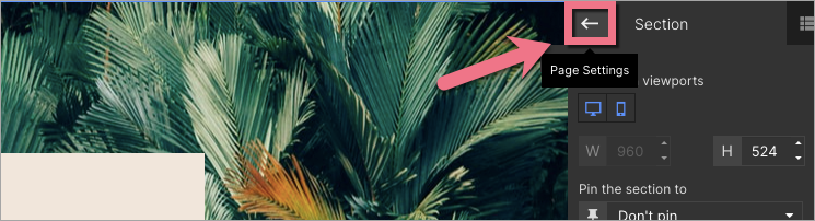 When editing, you can go back to Page Settings by clicking the arrow: