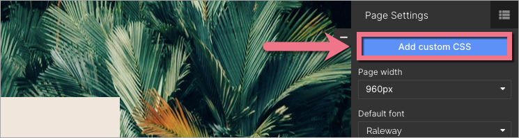 3. Now go to the editor of the landing page. Navigate to Page Settings and click Add custom CSS.