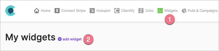 2. On the home page, after logging in, go to the Widgets (1) tab and then click Add widget (2).