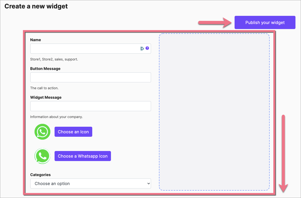 3. On the Create a new widget page, complete the required fields and decide how your icon will look (more fields can be found after scrolling down), and then click Publish your widget.