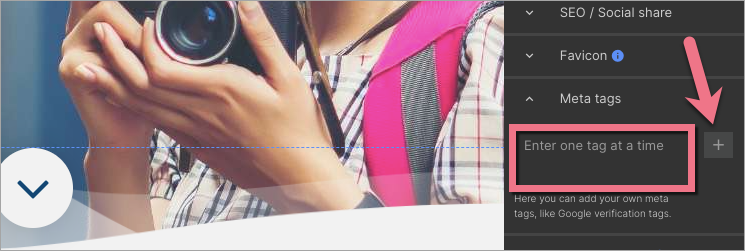 3. Paste the meta tag. Click the plus icon (+) to confirm.