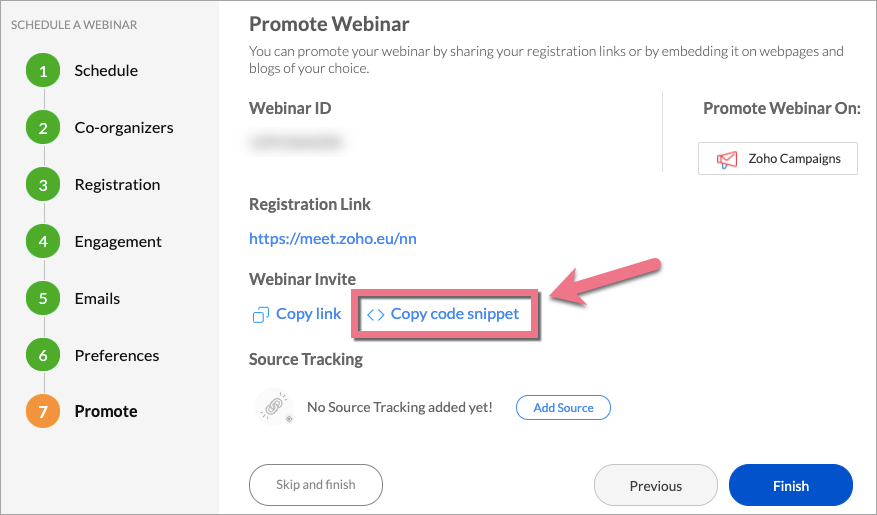 If you choose a meeting, in the last step, click Try Embed Widget.