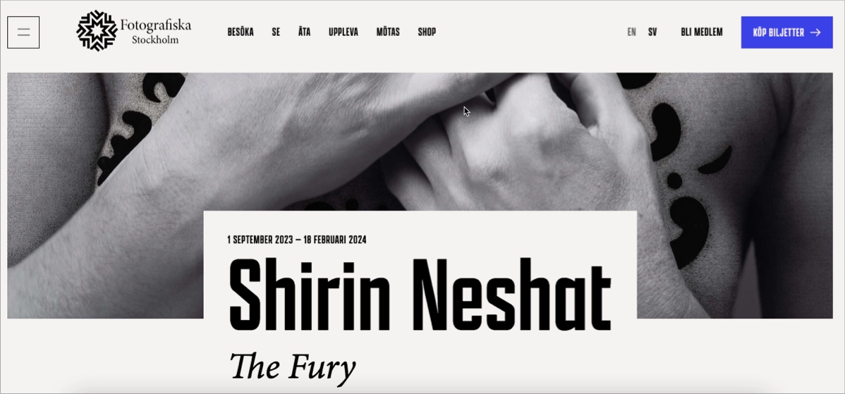 The example of the Fotografiska landing page for their exhibition Shirin Neshat – The Fury provides great inspiration. The CTA is clear and compelling, encouraging visitors to buy tickets. The page also includes adequate content to encourage potential attendees to visit.