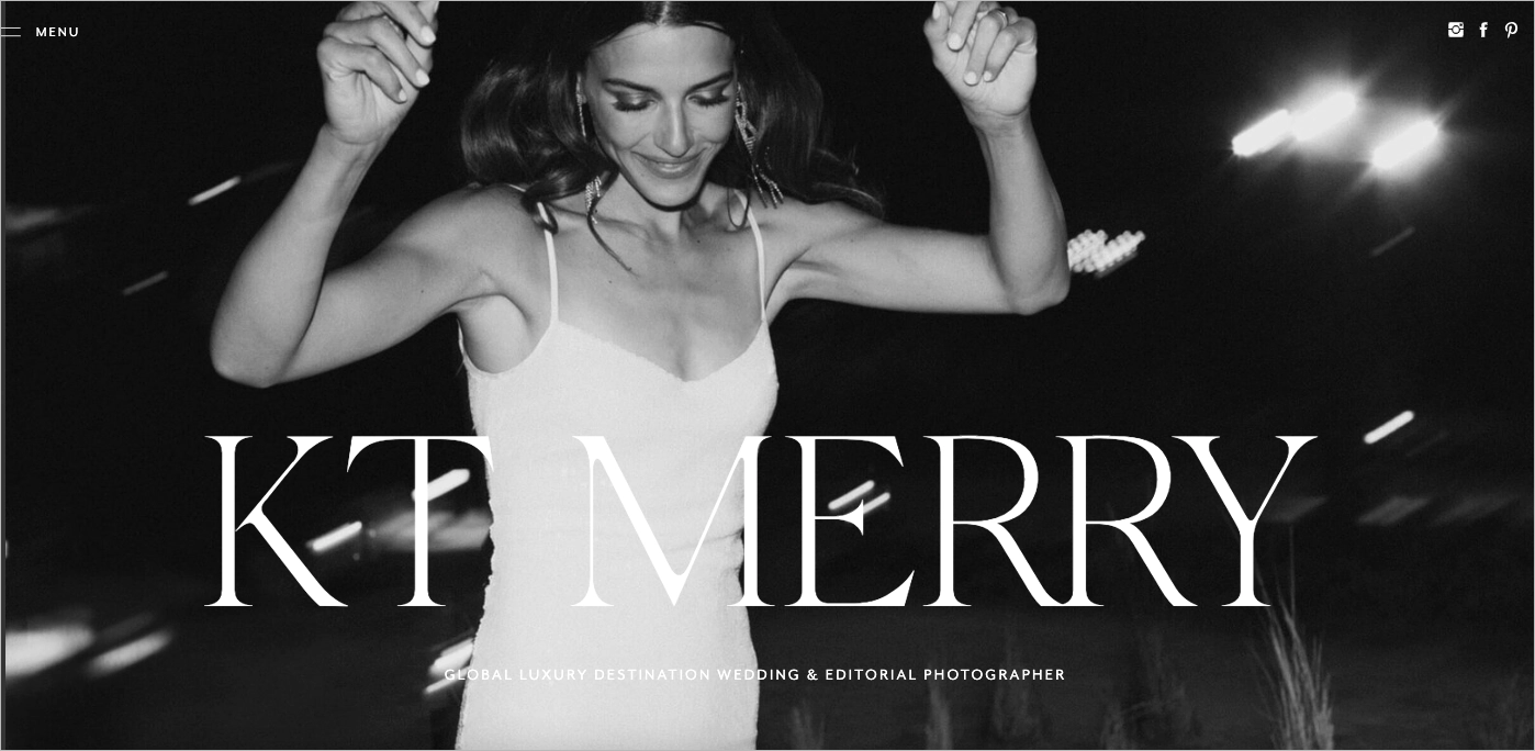Her site feels like walking into a beautiful gallery. It’s clean, thoughtfully designed, and focused on the work—whether that’s her wedding and editorial shoots or her philanthropic project, Render Loyalty, which supports wildlife conservation through fine art photography. There’s also a section for KT Merry Education, where she shares business and creative insights with other photographers.