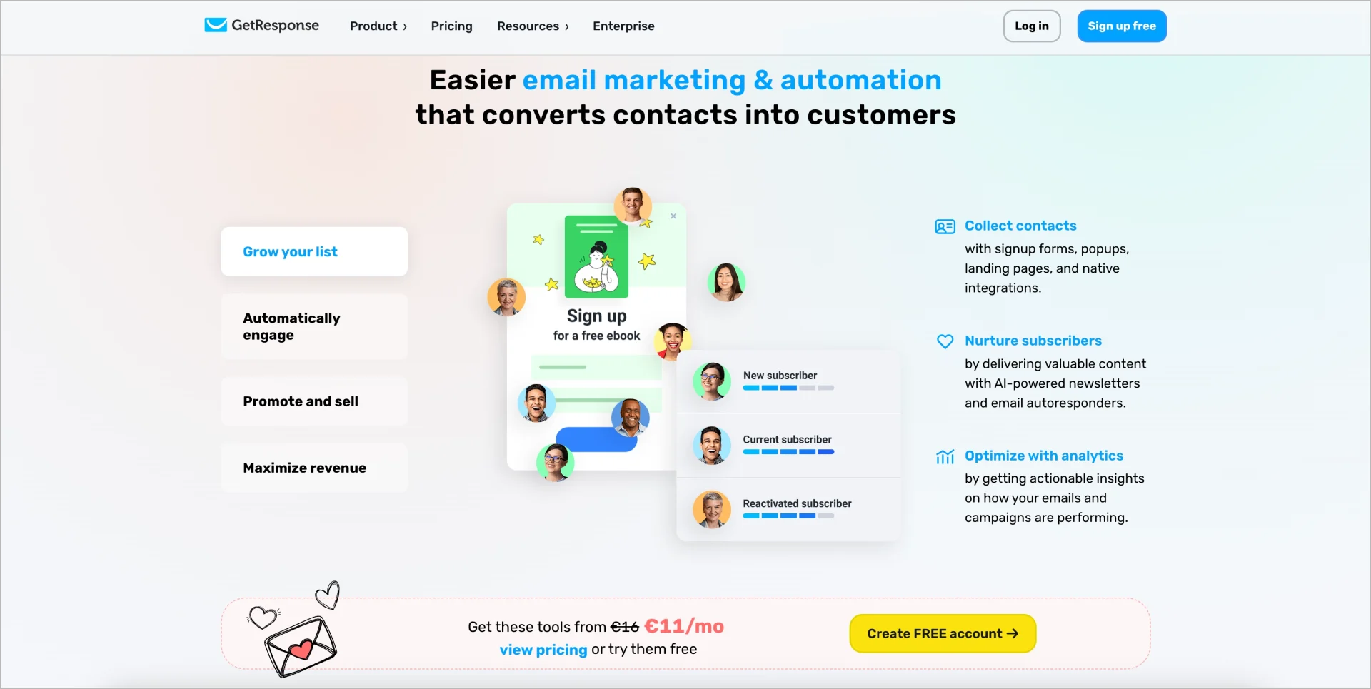 | GetResponse | Smart automation with webinar hosting | $19/month (1,000 contacts) | Yes (up to 500 contacts) |