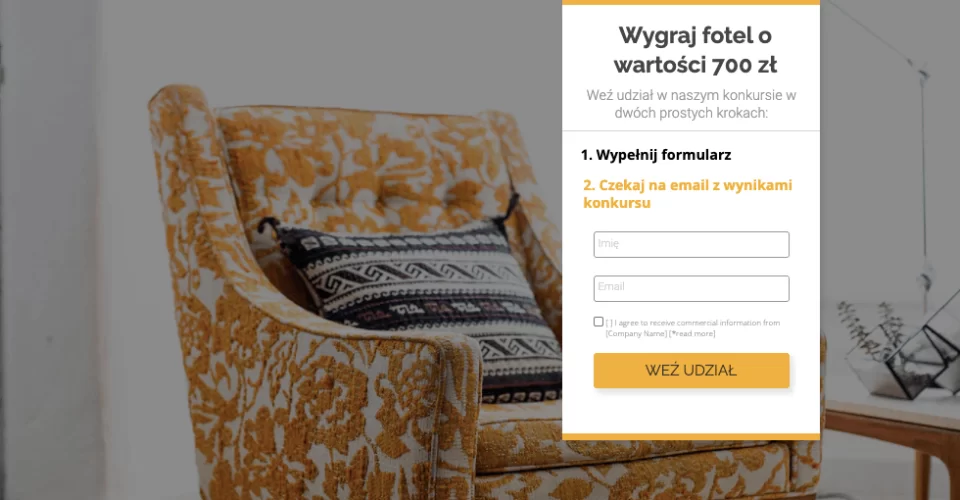 Wiele firm w tej branży organizuje różnego rodzaju konkursy w celu zwiększenia świadomości marki. Ale to nie jedyny cel, jaki możesz osiągnąć poprzez konkurs. Zwiększenie liczby leadów to kolejny z nich. Stwórz landing page, w którym opiszesz zasady udziału, a przy okazji dodasz formularz, przez który odbywać się będzie rejestracja.