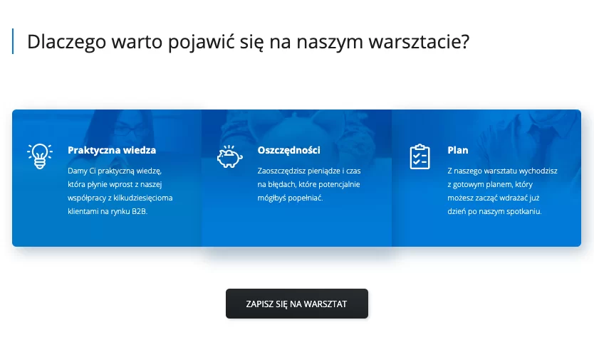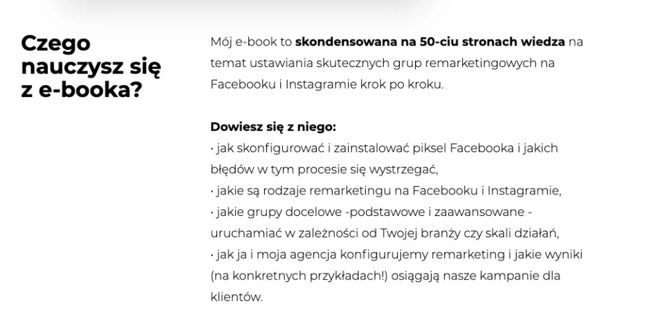 Przedstaw dokładnie, czego nauczą się ci, którzy skorzystają z oferty widocznej na landing page’u – to zdecydowanie pomoże zwiększyć konwersję!