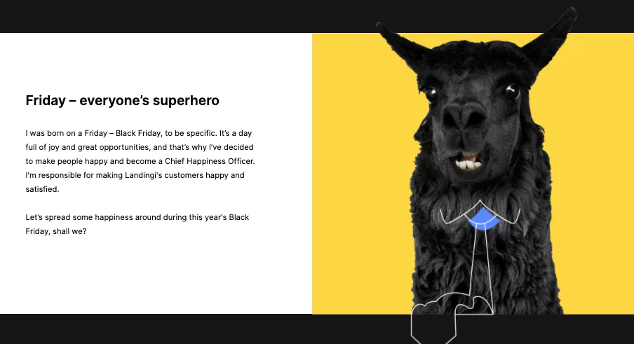 Czy Twój biznes to nie tylko produkty, usługi i sprzedaż, ale także coś, co działa na korzyść społeczeństwa? Pochwal się tym jak No Fluff Jobs. Cała pierwsza sekcja i animacje zostały tu wykorzystane, by zwrócić uwagę na niedoskonałości ofert pracy. Landing page to część większej kampanii, która świetnie przykuwa uwagę i dotyczy prawdopodobnie każdego, kto kiedykolwiek poszukiwał pracy. To także świetny fundament do budowania kampanii sprzeciwiającej się niekompletnym ogłoszeniom pracodawców, a także genialny sposób na promowanie własnego (rzetelnego) portalu z ofertami pracy.