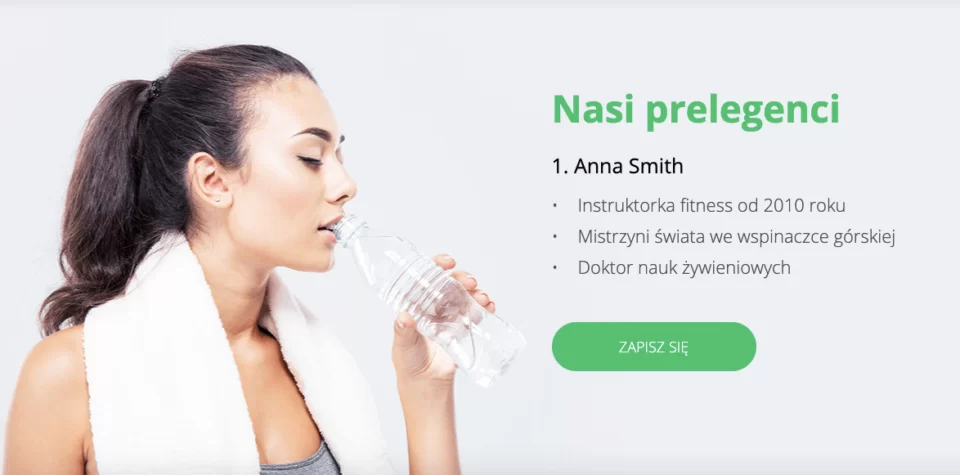 Obecność znanych osobistości zwiększa prestiż imprezy, a także przyciąga większą liczbę uczestników. Taki atut nie może zostać pominięty na stronie docelowej. Aby stworzyć skuteczny landing page, dodaj osobną sekcję poświęconą kluczowym postaciom; dodaj ich zdjęcia oraz krótkie opisy.