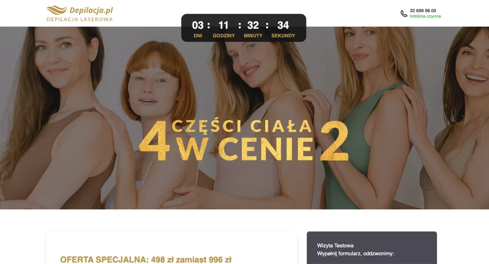 Nic nie motywuje tak dobrze do skorzystania z oferty jak jej… ograniczenie, zwłaszcza czasowe. Nie inaczej jest w branży beauty. Luksusowe i drogie usługi dotyczące urody, takie jak depilacja laserowa, nie znajdują się wysoko na liście potrzeb i wydatków przeciętnej kobiety (choć całkiem wysoko na liście pragnień!). Dlatego warto zaznaczyć upływający czas. Przemijająca oferta skusi niejedną przedstawicielkę płci pięknej do jej rozważenia, a zaproponowanie wizyty testowej sprawi, że chętniej skusi się na rozmowę telefoniczną.