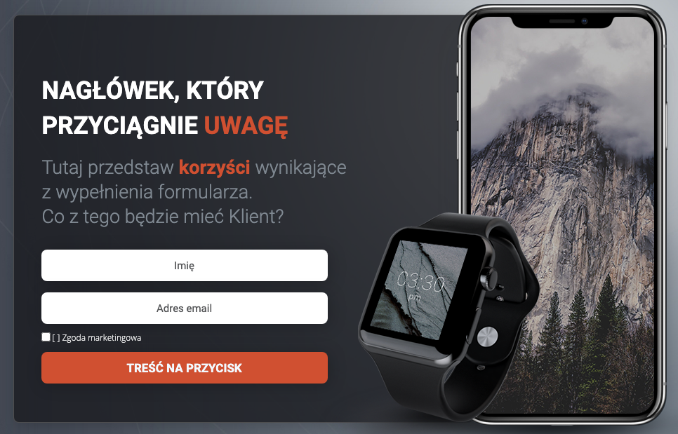Nie zapominaj, że część użytkowników wejdzie na Twoją stronę na swoich smartfonach. Jeżeli nie zadbasz o osobny widok mobilny, może się okazać, że standardowy landing page otwarty w przeglądarce mobilnej będzie wyświetlać się błędnie.