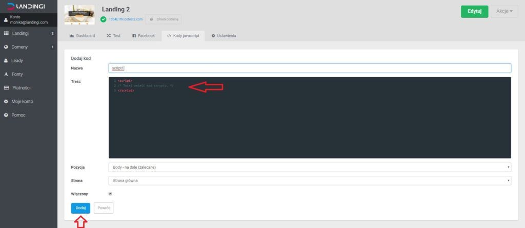 Dodawaj własne kody JavaScript