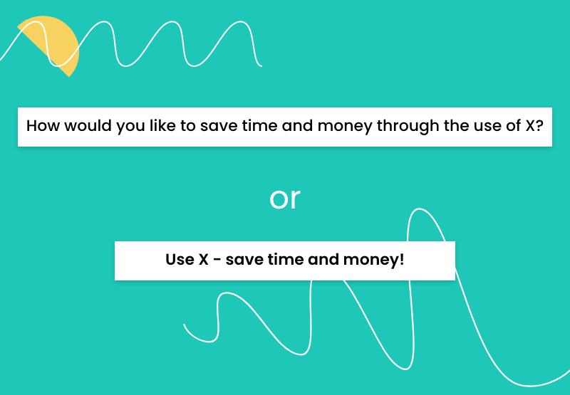 Zamień pytania na twierdzenia. Pytania wymagają większego wysiłku i zastanowienia się. Odbiorca zostaje postawiony przed koniecznością wymyślenia odpowiedzi – nawet jeśli tylko hipotetycznej, niewychodzącej poza ramy jego myśli.