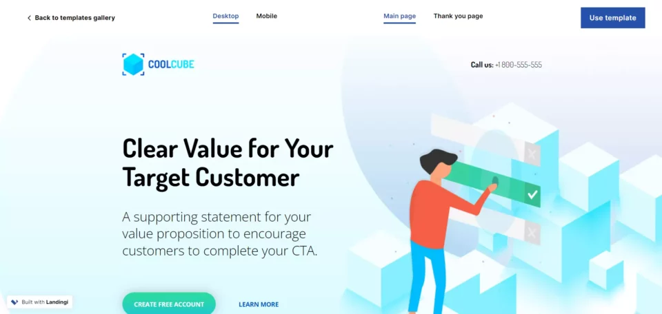 Zbuduj taką stronę z szablonem sprzedażowym od Landingi.