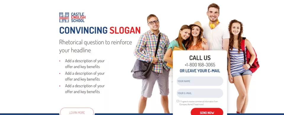 Zbuduj landing page’a spełniającego te wytyczne z szablonem od Landingi: English School