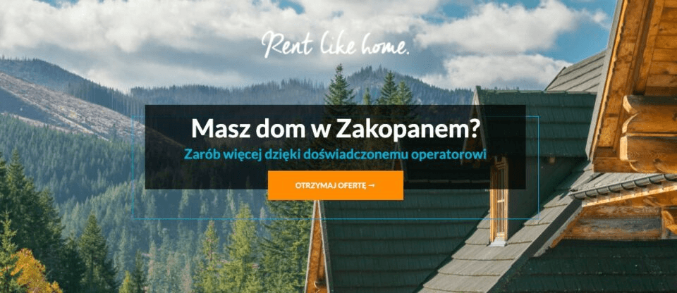 Tak wygląda hero image na jednym z landing page’y klienta Landingi – Rent like home: