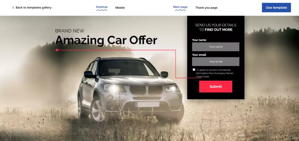 Stwórz podobny landing page z tym szablonem od Landingi: Car Offer
