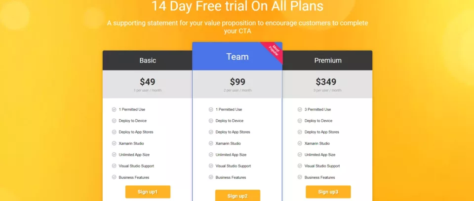 Stwórz podobny landing page z tym szablonem od Landingi: Pricing Table