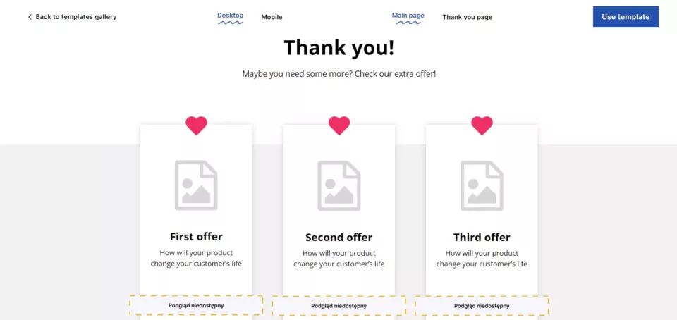 Zbuduj podobny landing page z tym szablonem od Landingi: Simple Upsell Page