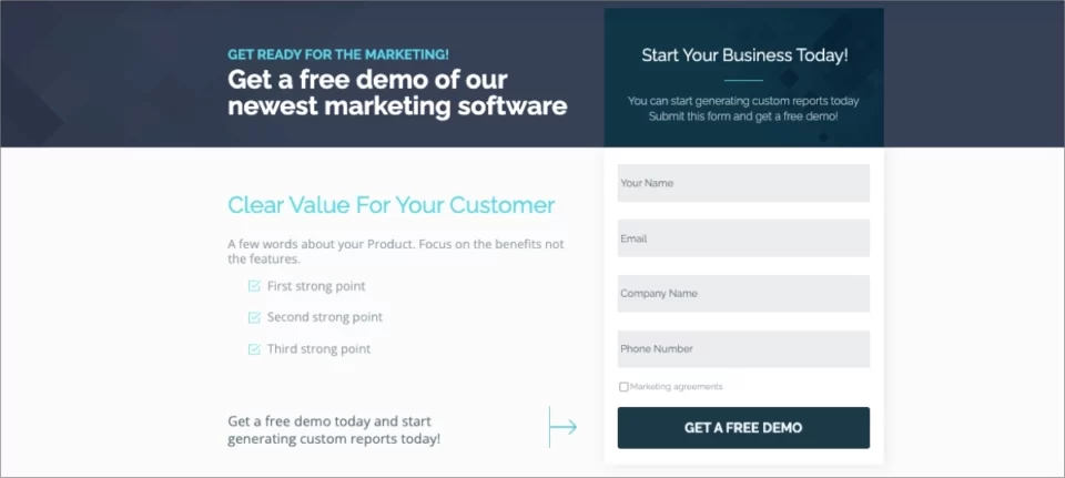 - Extensive demo request form – it should be as short as possible, involving only necessary form fields, to drive higher conversions.