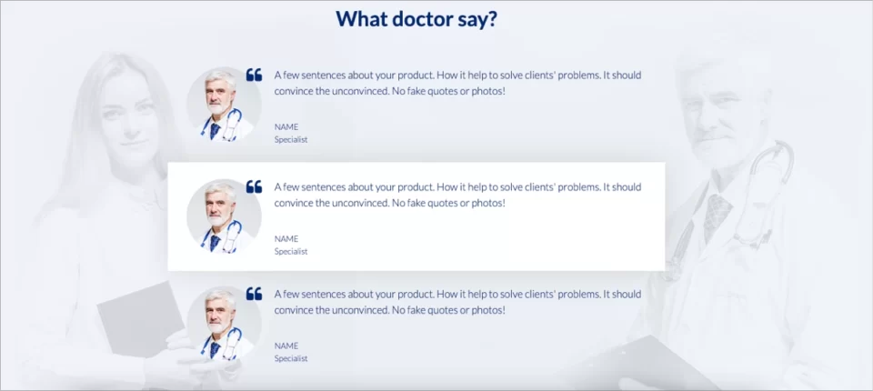 Dodaj sekcję z informacjami o lekarzach z przyciskami mediów społecznościowych, aby zwiększyć zaufanie wśród potencjalnych pacjentów – wykorzystaj szablon medyczny Landingi i przygotuj się na wyższą konwersję!
