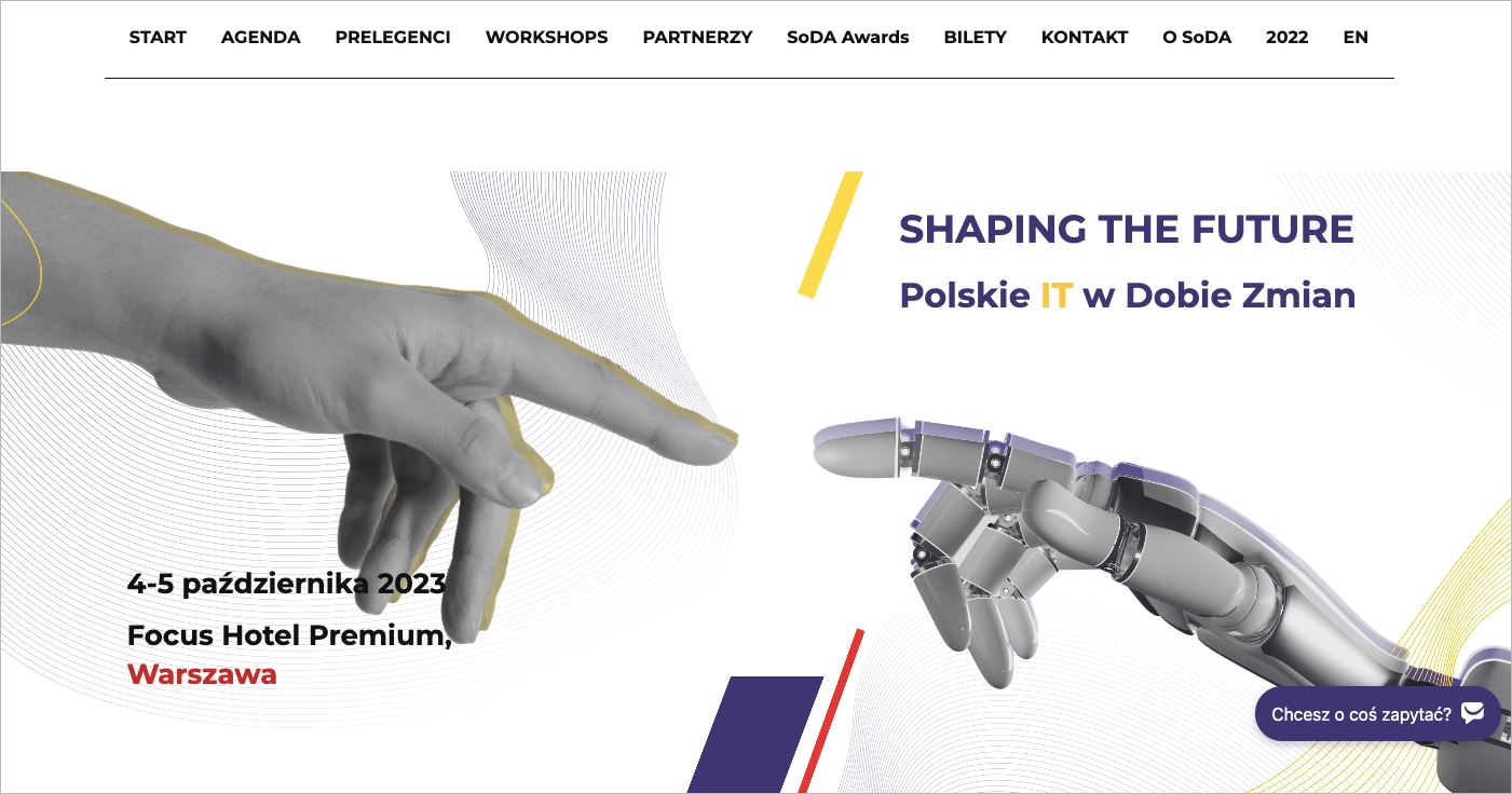 Ponadto landing page konferencji ma być dostosowany do konkretnych odbiorców i zapewniać możliwości nawiązywania kontaktów. Strona docelowa konferencji SoDA robi to wyjątkowo dobrze.
